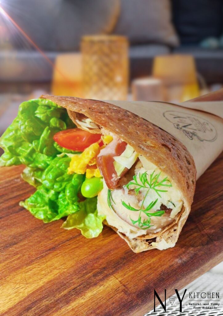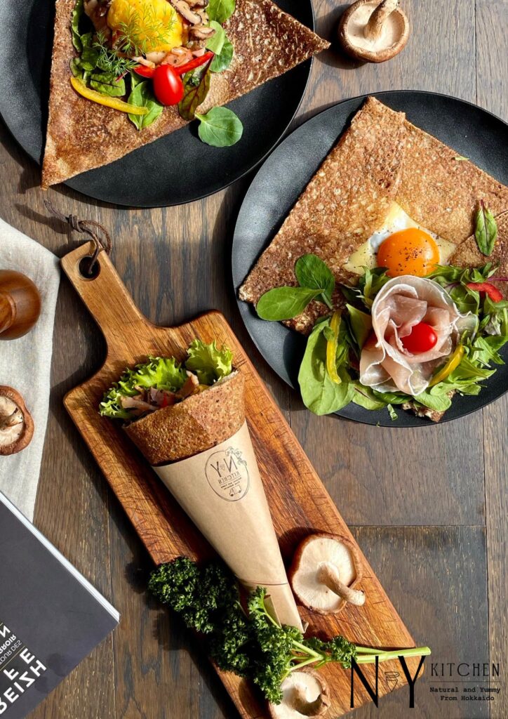 自慢のガレット生地は、そばの実がナッツの様にゴロゴロと感じられる程超粗挽きオリジナルそば粉を使用。