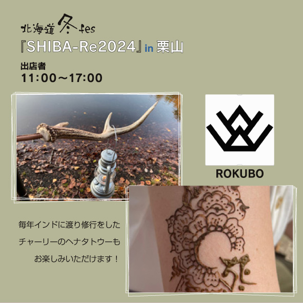 毎年インドに渡り修行をしたチャーリーのヘナタトウーもお楽しみいただけます!